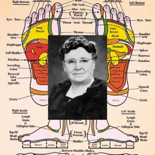 Au début du XXe siècle, le Dr William Fitzgerald découvrit qu’une pression exercée sur les mains et les pieds produisait un effet local. Le Dr Riley affina la technique et réalisa les premiers schémas détaillés. Dans les années 30, Eunice Ingham née dans le Dakota du sud en 1889 et ayant travaillé comme physiothérapeute pour le Dr Riley, mena de nombreuses recherches pour développer sa théorie sur la thérapie des pieds. Elle dressa soigneusement une carte des zones des pieds en rapport avec les organes. Elle mit en pratique sa théorie et travailla sur les zones des pieds des personnes en utilisant son pouce et ses doigts.
